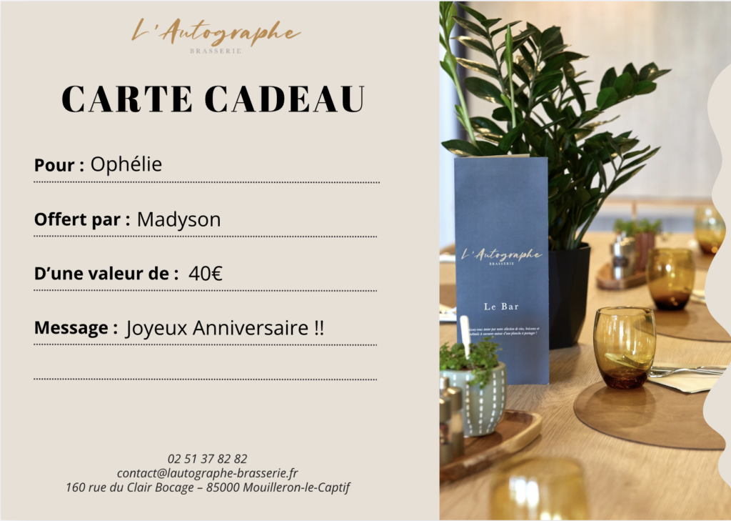 Que ce soit pour un anniversaire, une occasion spéciale ou simplement pour faire plaisir, la carte cadeau est une attention qui marque toujours.